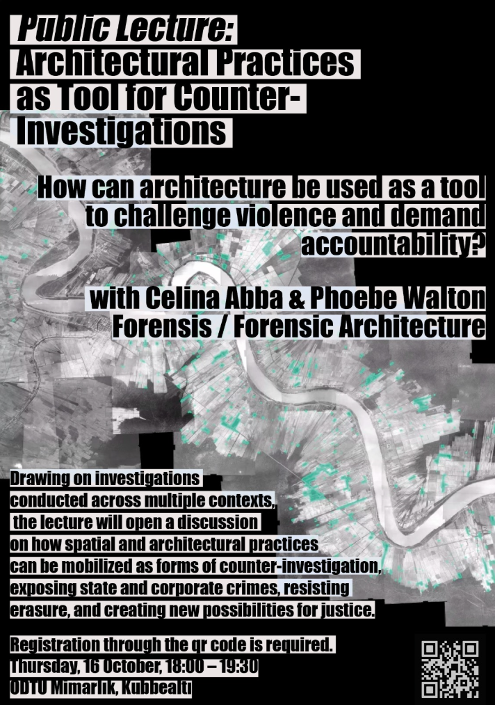 We’re delighted to invite you to a public lecture hosted by the METU Department of Architecture in collaboration with Antenna (formerly Hafıza Merkezi Berlin) and Forensis/Forensic Architecture.
