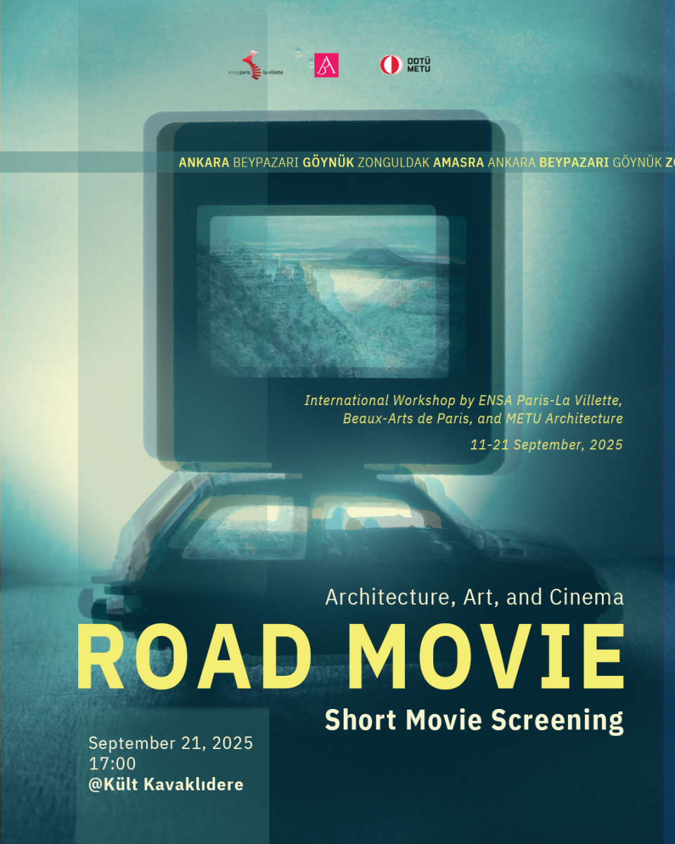 ENSA Paris La Villette, Beaux-Arts de Paris ve ODTÜ Mimarlık Bölümü tarafından ortaklaşa düzenlenen uluslararası atölye çalışması “Road Movie: Architecture, Art, and Cinema”, 11–21 Eylül tarihleri arasında Ankara, Beypazarı, Göynük, Zonguldak ve Amasra’da gerçekleştirilmiştir. Üç okulun öğrencileri tarafından üretilen kısa filmler, 21 Aralık Pazar günü 17.00–19.30 saatleri arasında Kült Kavaklıdere’de gösterilecektir.